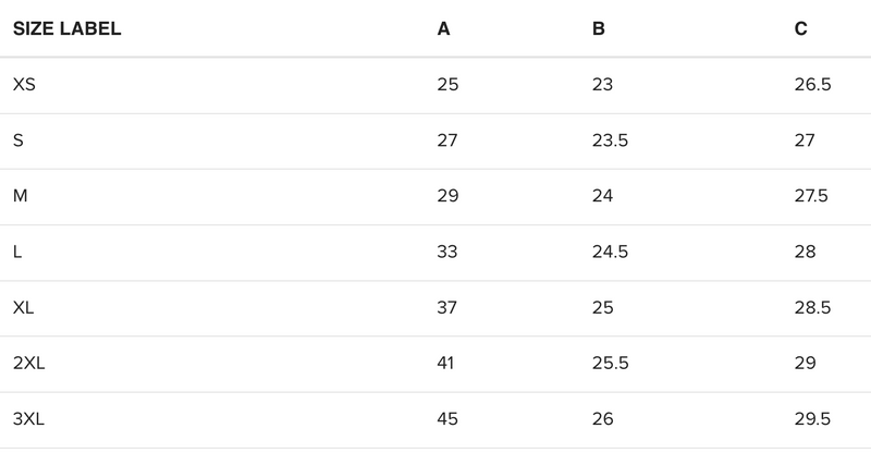 Record your body measurements for each dimension, then compare to the sizing chart. We suggest ordering a size up when your measurements are between sizes.