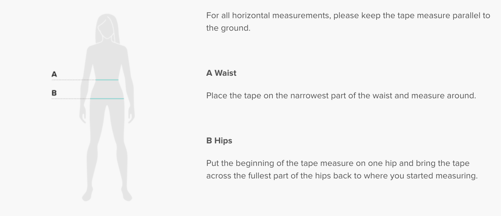 Record your body measurements for each dimension, then compare to the sizing chart. We suggest ordering a size up when your measurements are between sizes.