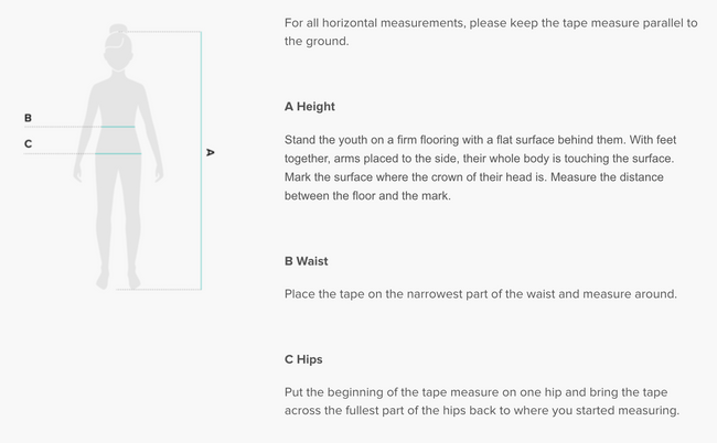 Record your body measurements for each dimension, then compare to the sizing chart. We suggest ordering a size up when your measurements are between sizes.