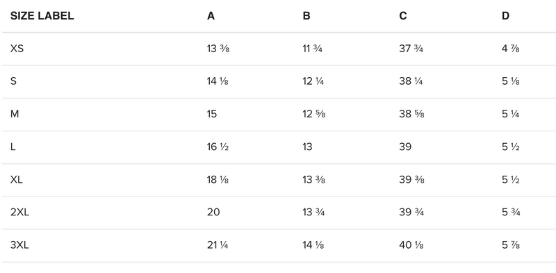 If you have a similar piece of clothing with a favorite fit, lay it flat and measure it. Then match those measurements to the chart below for your best fit.