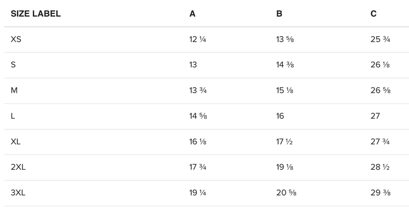 If you have a similar piece of clothing with a favorite fit, lay it flat and measure it. Then match those measurements to the chart below for your best fit.