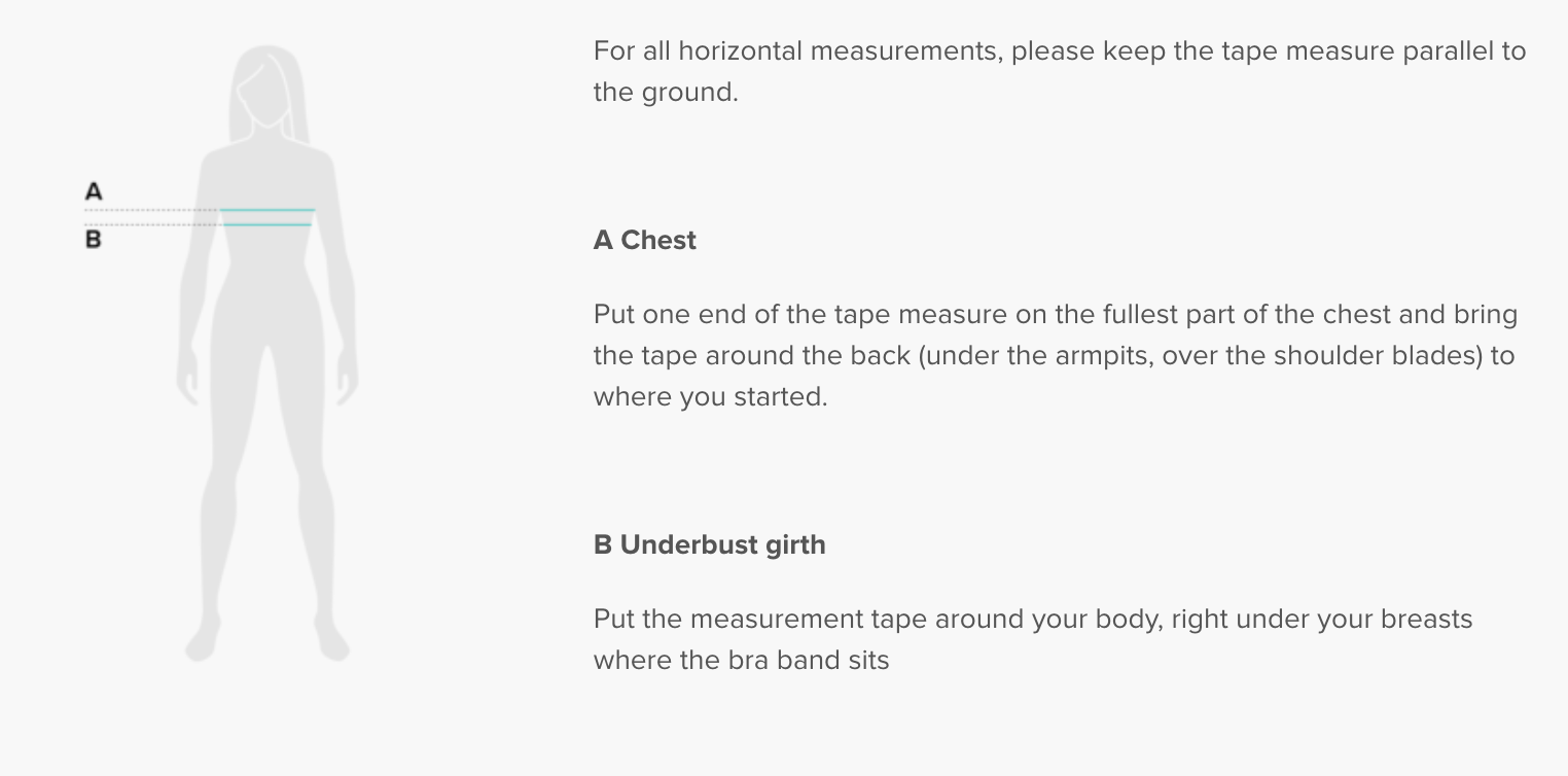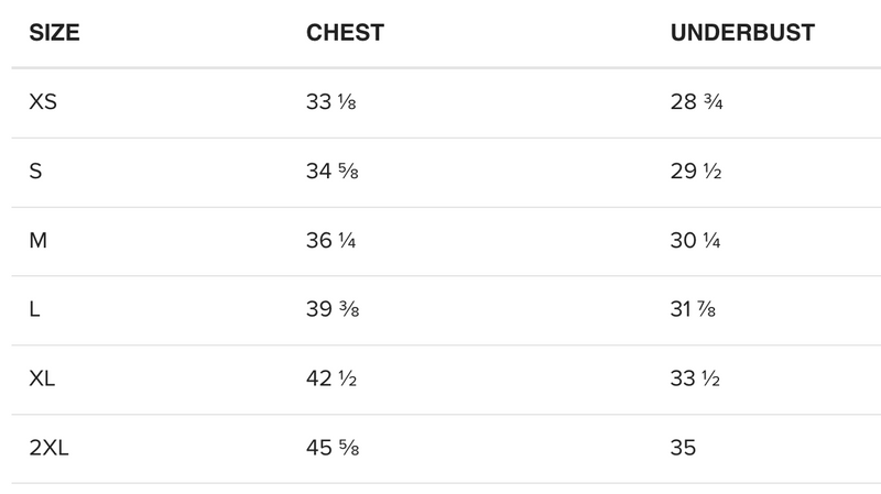 Record your body measurements for each dimension, then compare to the sizing chart. We suggest ordering a size up when your measurements are between sizes.