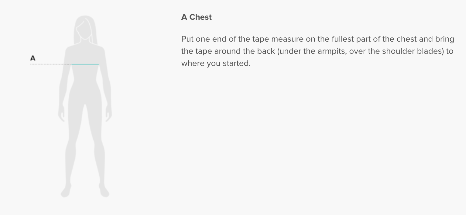 Record your body measurements for each dimension, then compare to the sizing chart. We suggest ordering a size up when your measurements are between sizes.