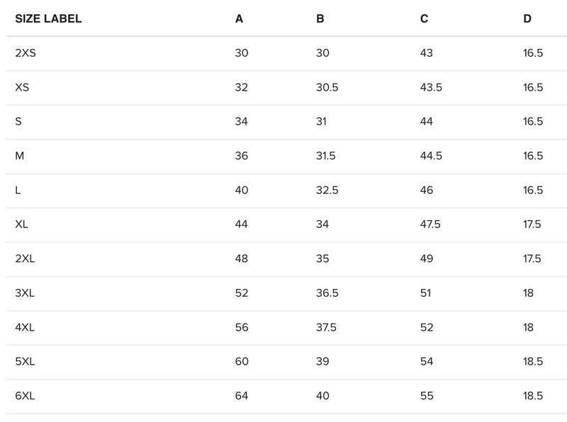 Record your body measurements for each dimension, then compare to the sizing chart. We suggest ordering a size up when your measurements are between sizes.