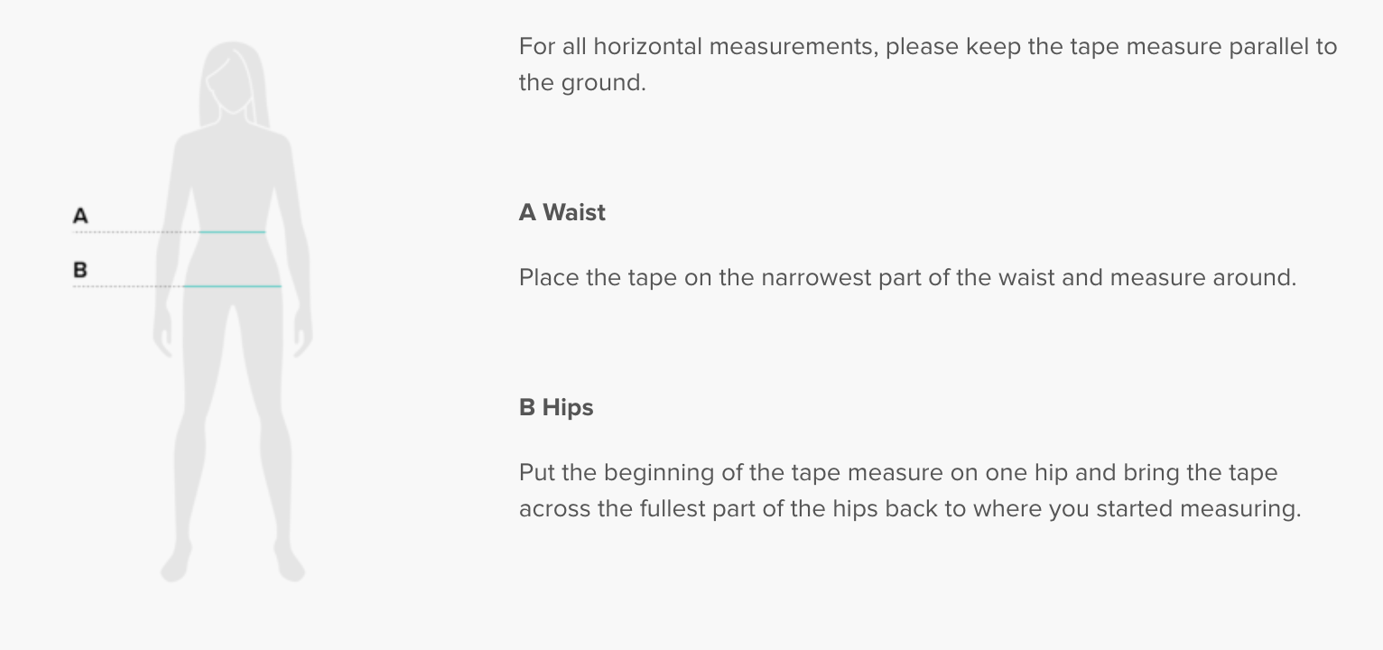 Record your body measurements for each dimension, then compare to the sizing chart. We suggest ordering a size up when your measurements are between sizes.
