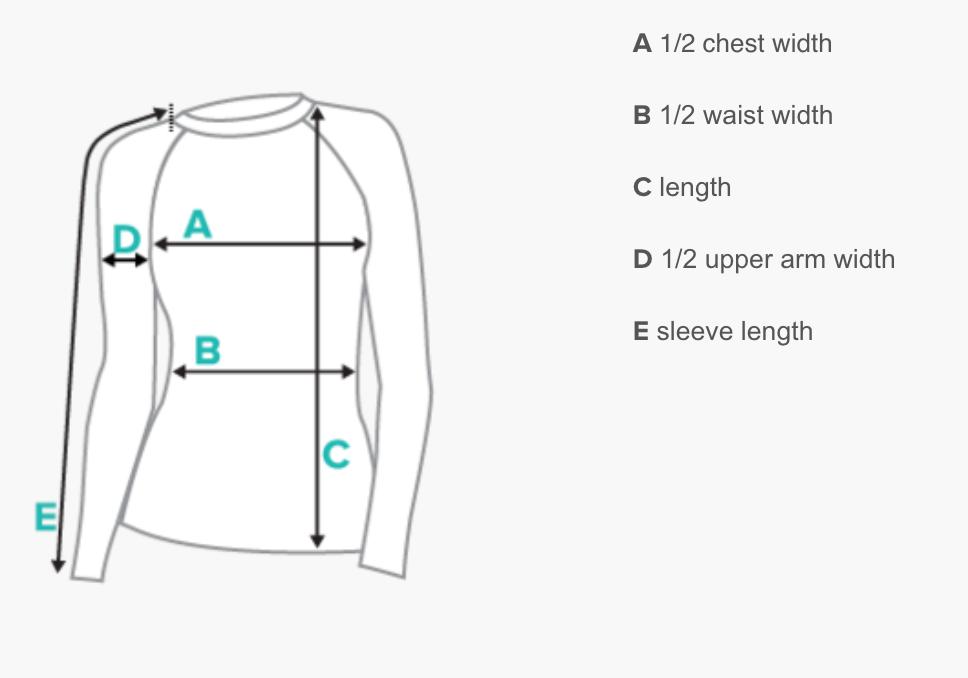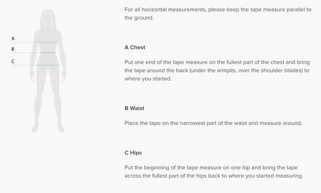Record your body measurements for each dimension, then compare to the sizing chart. We suggest ordering a size up when your measurements are between sizes.